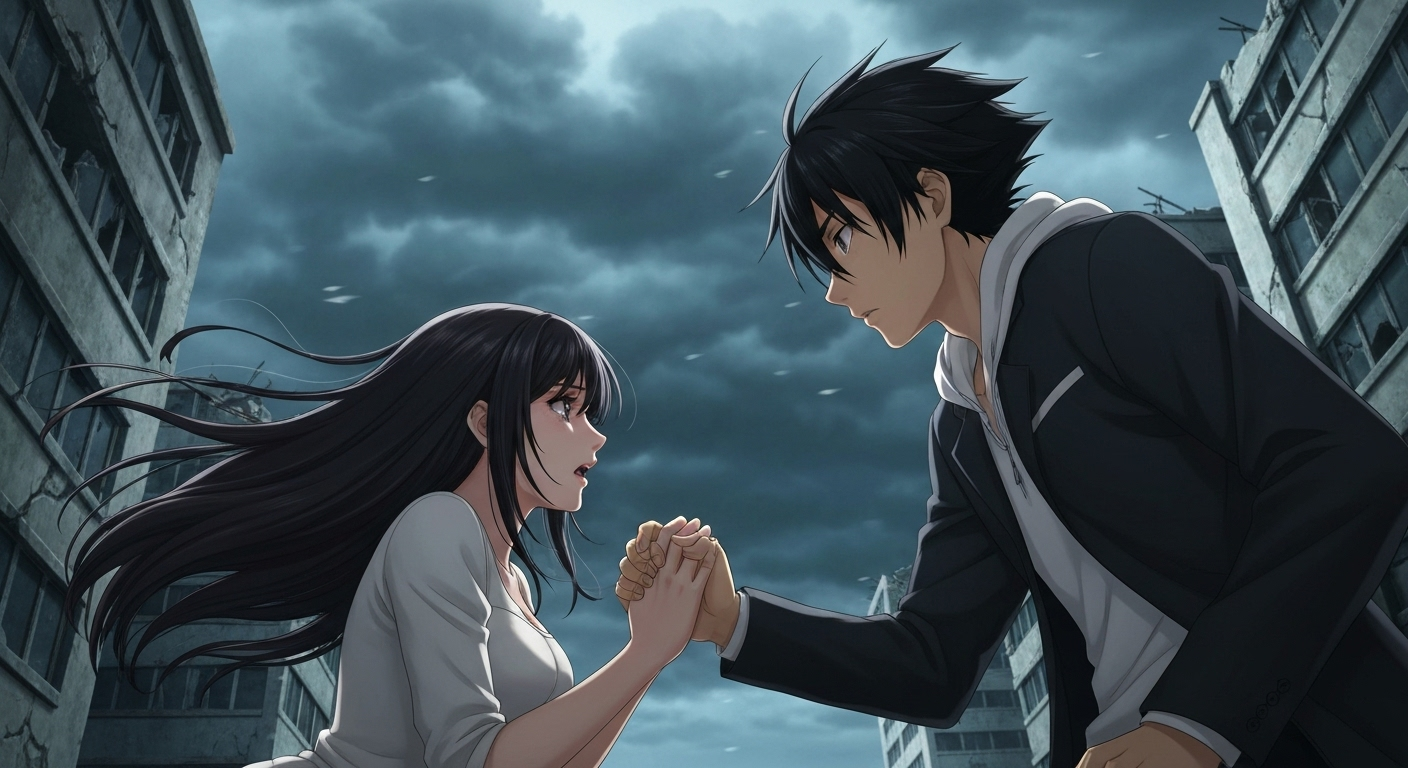 An hour later, under the oppressive gray sky, a man and a woman could be seen walking the streets of the Ruined City.