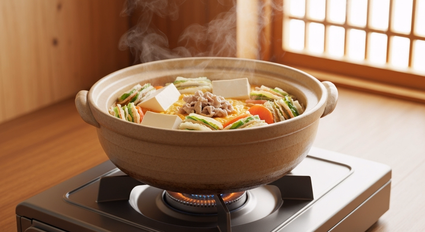 With a pleasant smile, Shinobu took their order and briskly began to make preparations. A portable stove was placed on the table, followed by a ceramic pot.